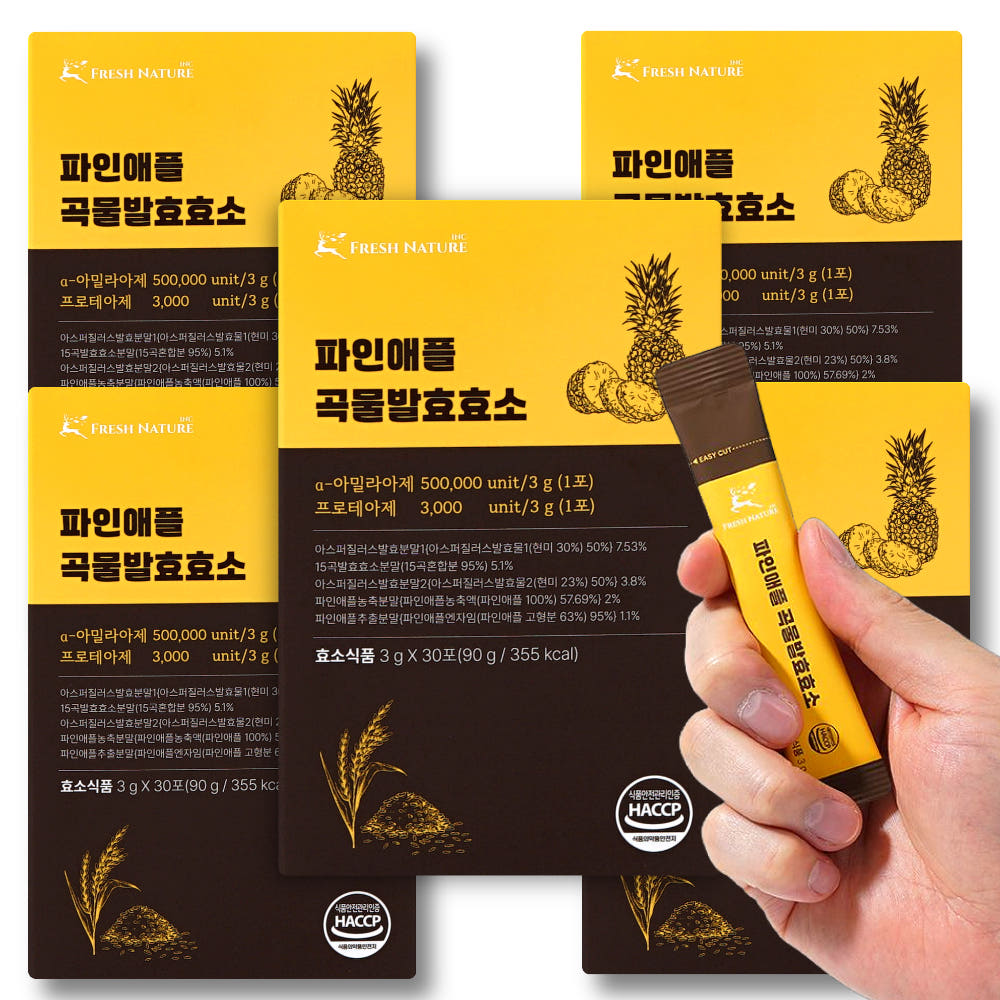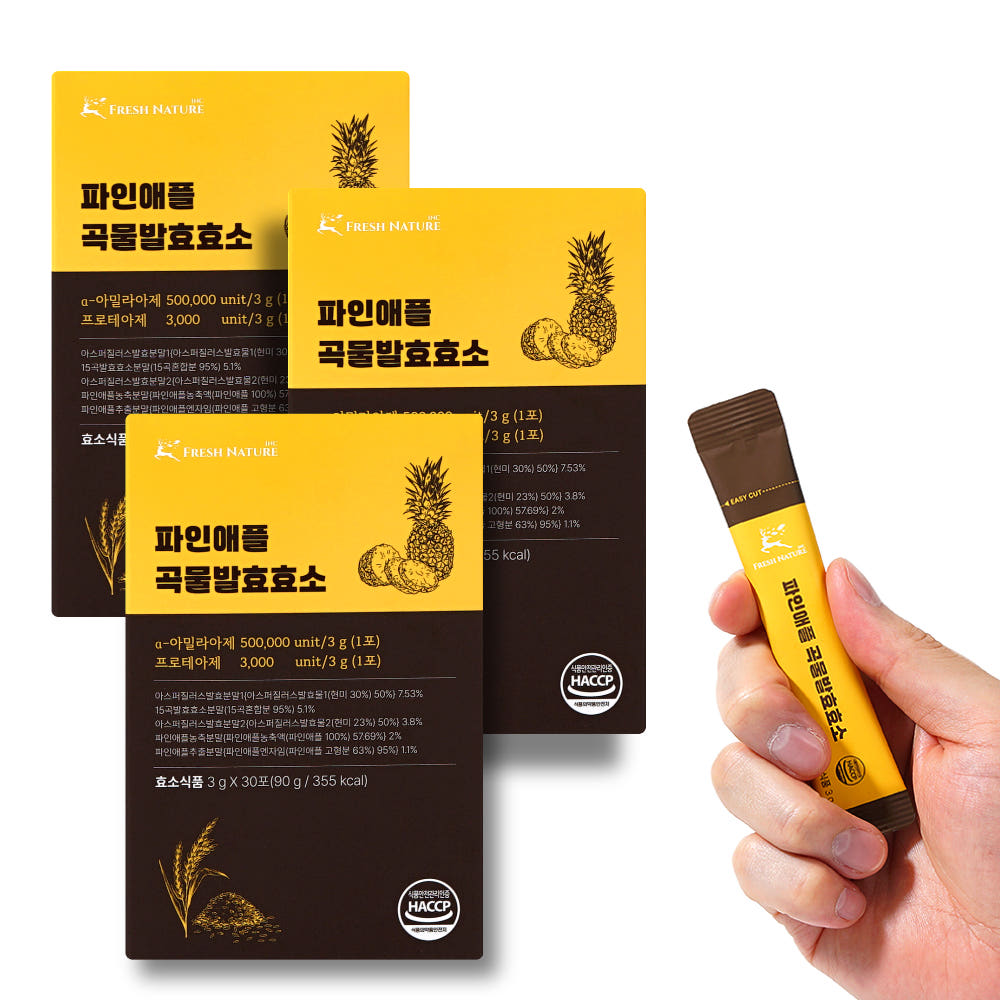 프레시네이처 브로멜라인 소화 효소 파인애플 곡물 탄수화물 분해 30포, 3개