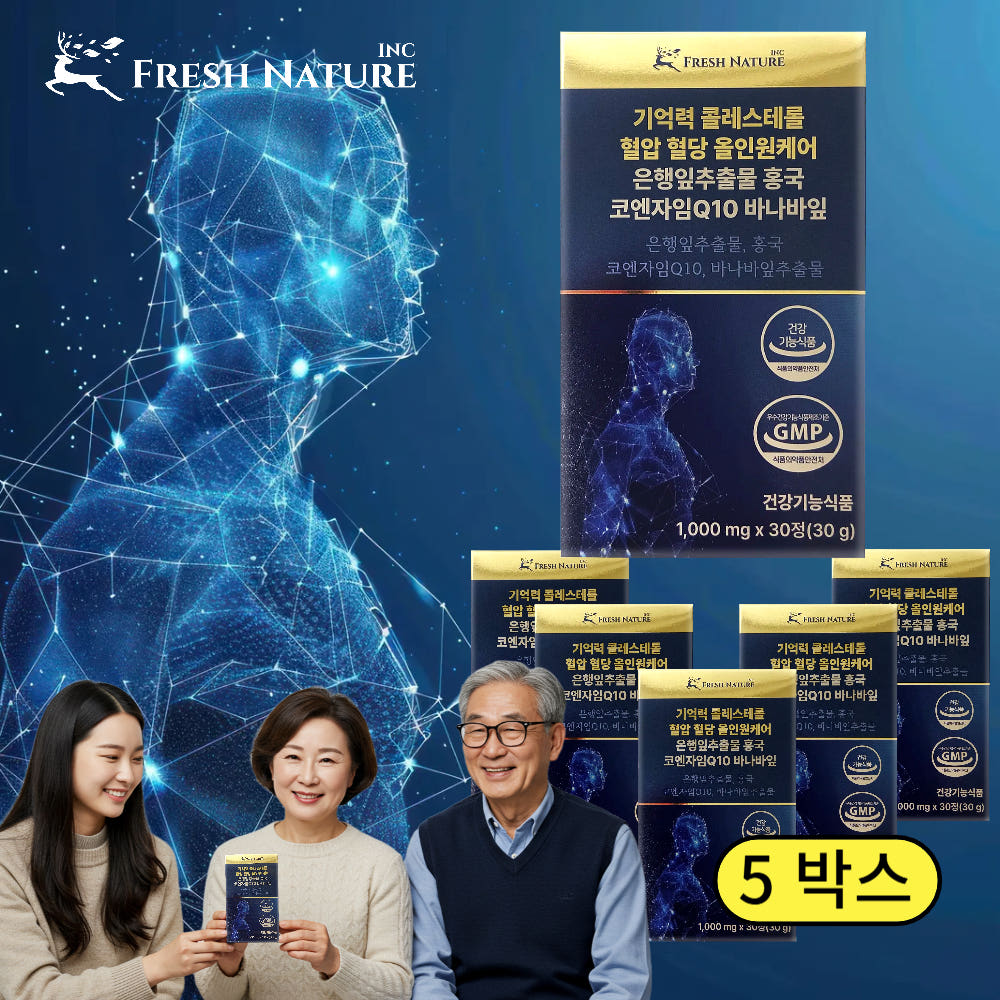 바나바잎 코엔자임Q10 홍국 은행잎추출물 콜레스테롤 혈압 혈당 기억력 30정, 5개